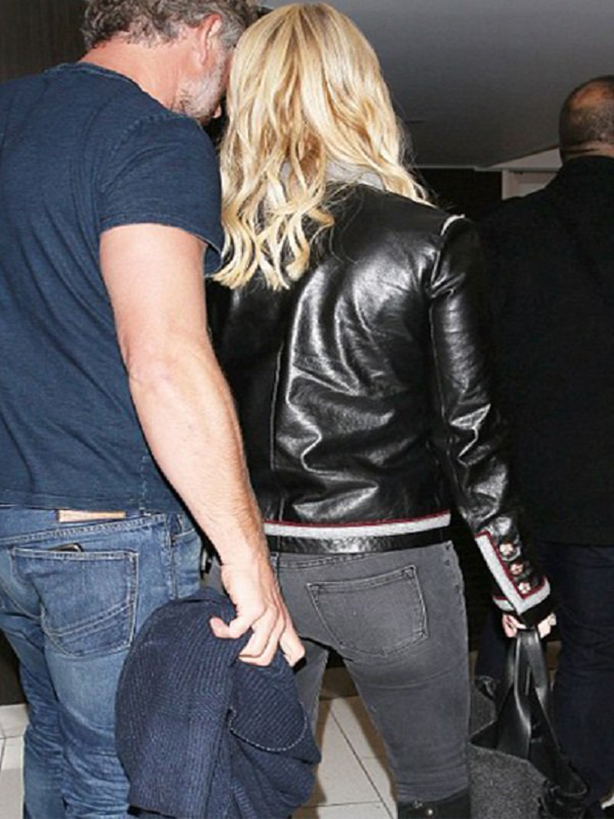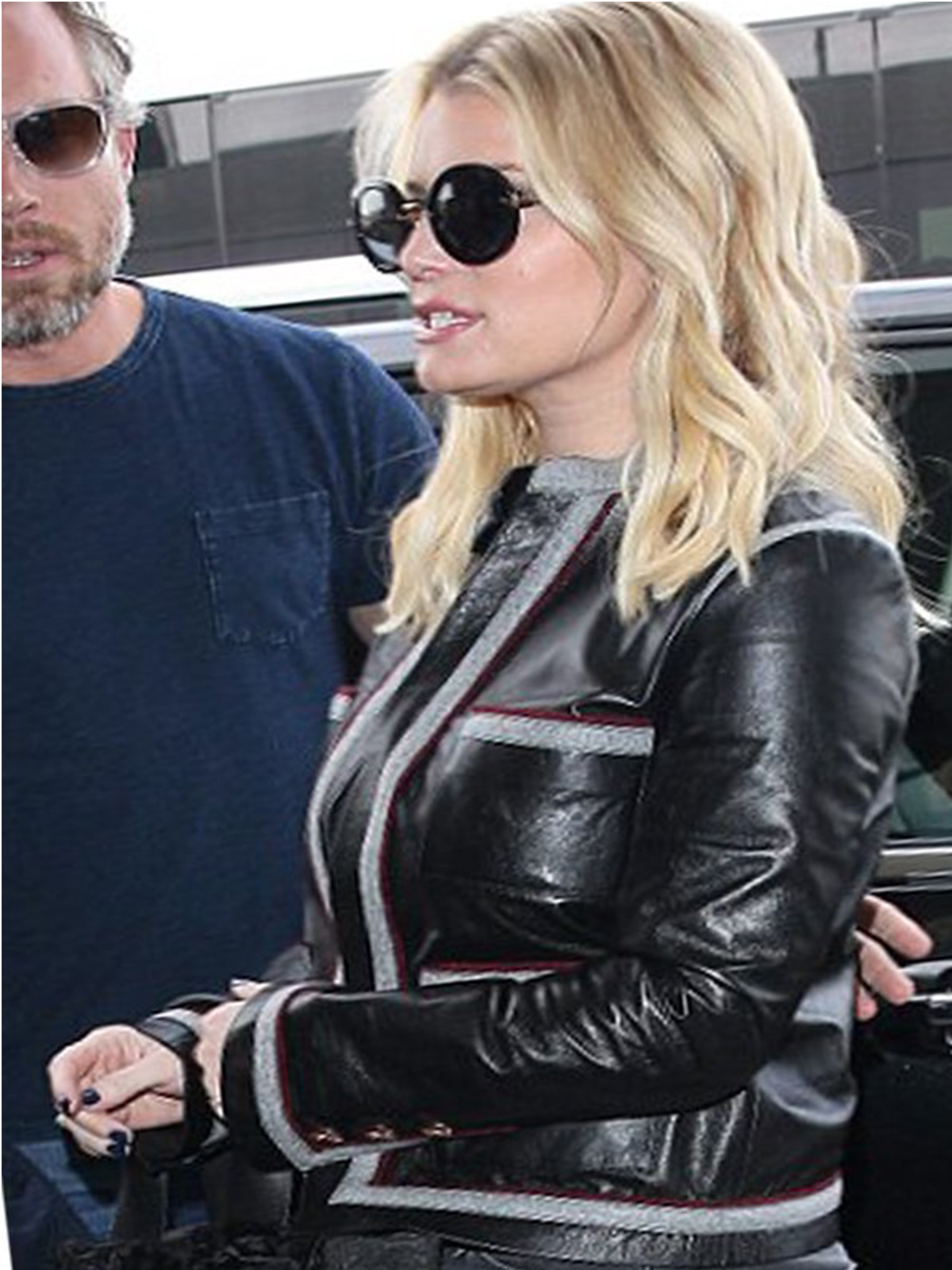 Jessica Simpson LAX Airport Black Leather Jacket