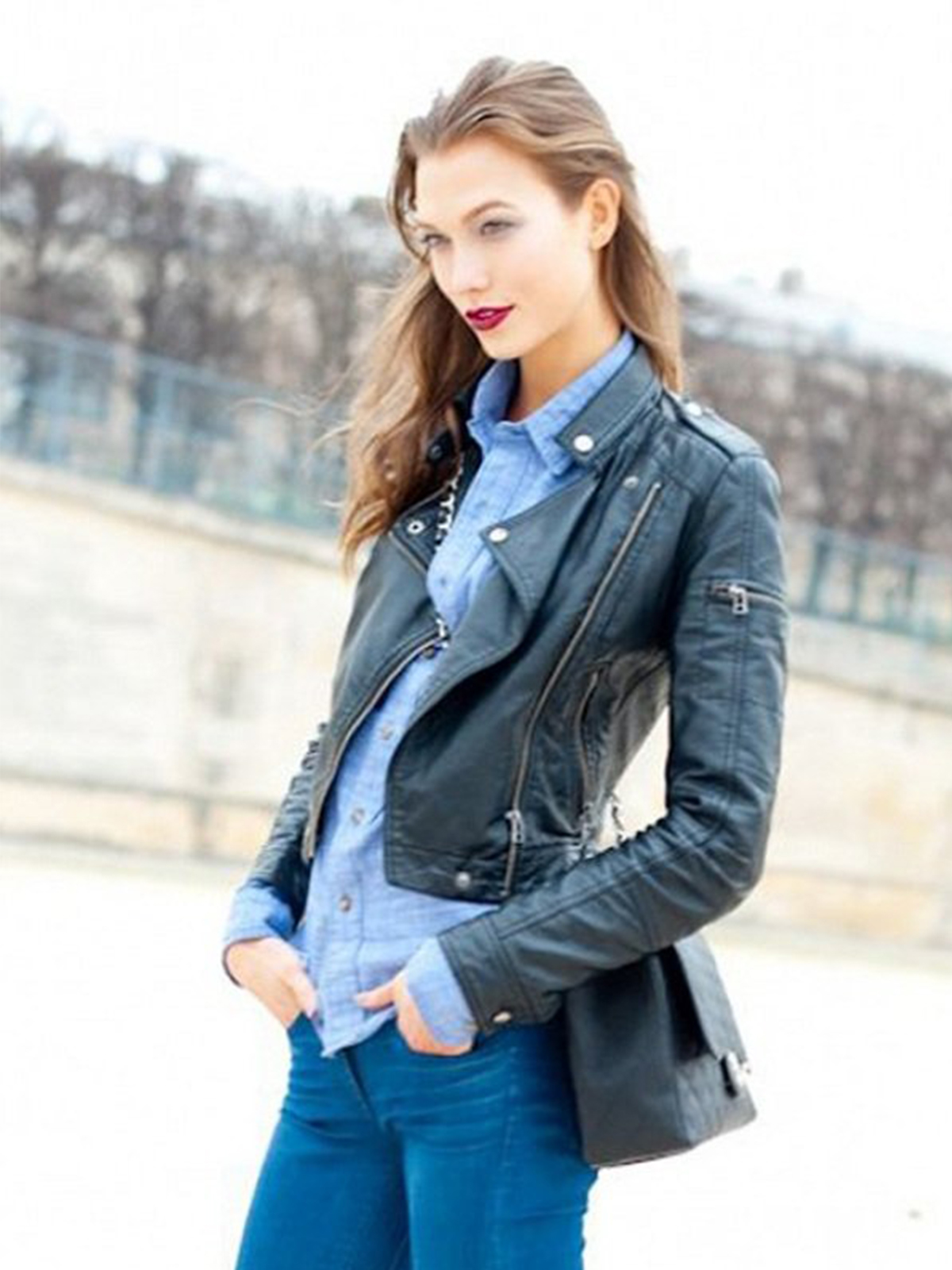 Karlie Kloss Black Leather Jacket