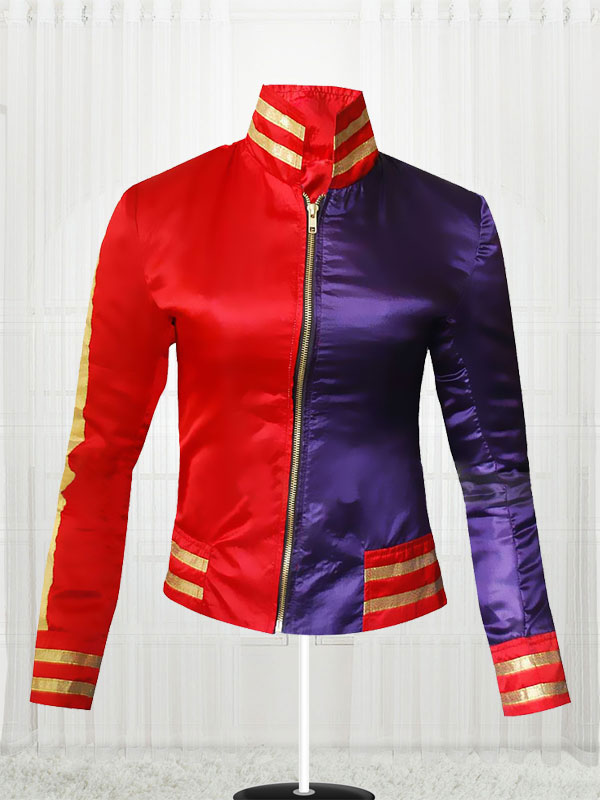 Wonderful Suicide Squad series Margot Robbie jacket is constructed of 100% Satin fabric in red color, within lined with Viscose stuff.